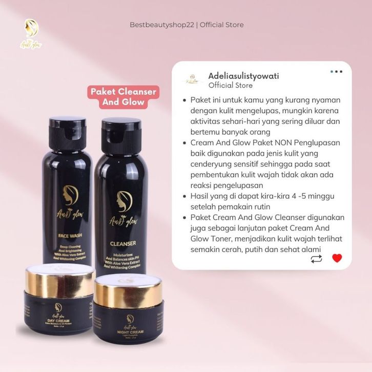 CLEANSER ANDGLOW, Day Cream ANDGLOW, Facial Wash ANDGLOW, Night Cream ANDGLOW, P. AND GLOW CLEANSER, P. AND GLOW TONER, Toner ANDGLOW