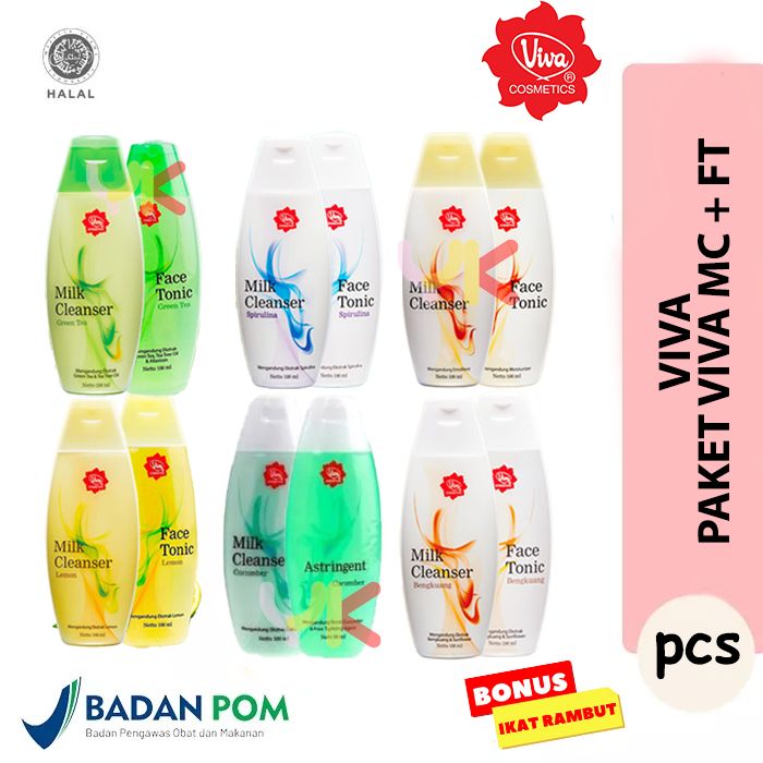 Paket Viva Milk Cleanser 100Ml + Face Tonic 100Ml All Skin Spirulina Bengkoang Original