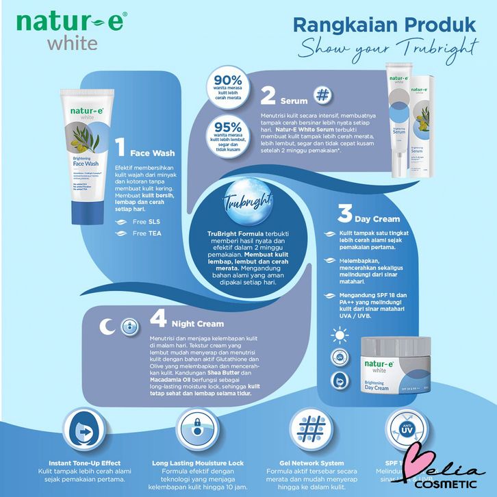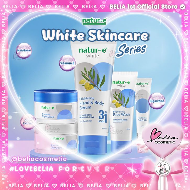 BELIA NATUR-E White Skincare Series Face Wash Day & Night Cream White Brightening Hand & Body Serum