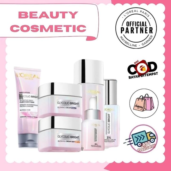 L'Oreal Paris Paket Glycolic Bright Glowing - Day, Night Cream, Facial Wash & Serum - Skincare Glyco