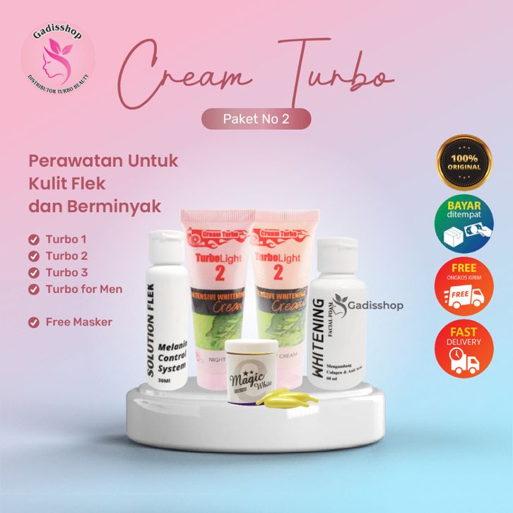 Cream Turbo Paket No 2 Perawatan Pencerah Wajah Wanita oily skin Free Masker Dan Vitamin