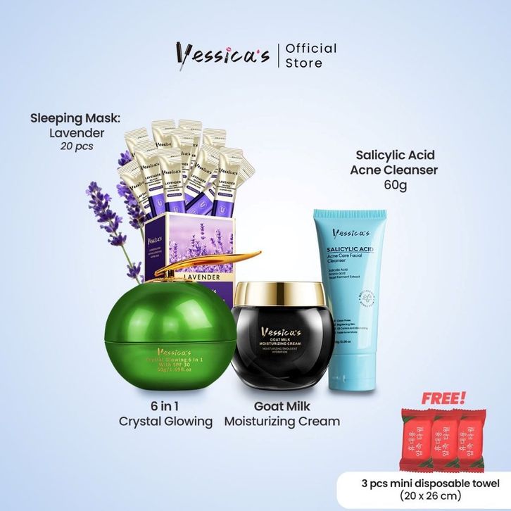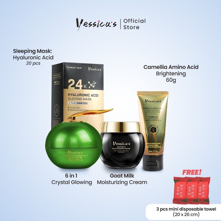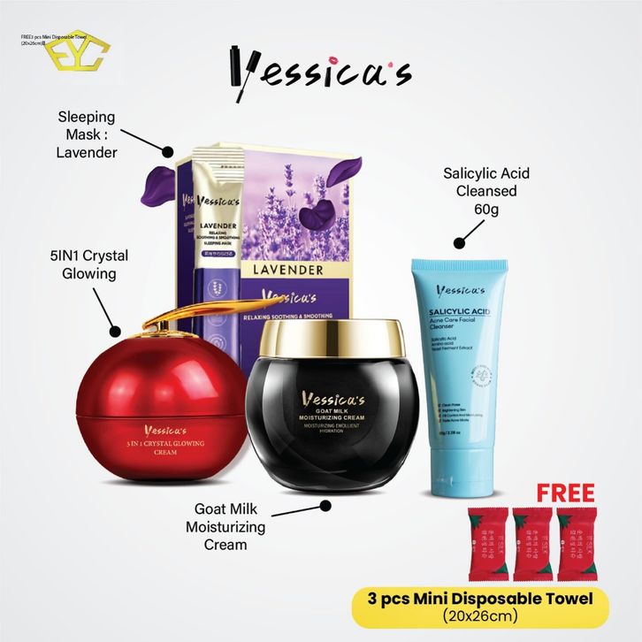 FYC - Yessica's Face Wash Bright 60gr + Goat Milk Moist + Crystal Glowing Cream + Sleeping Mask