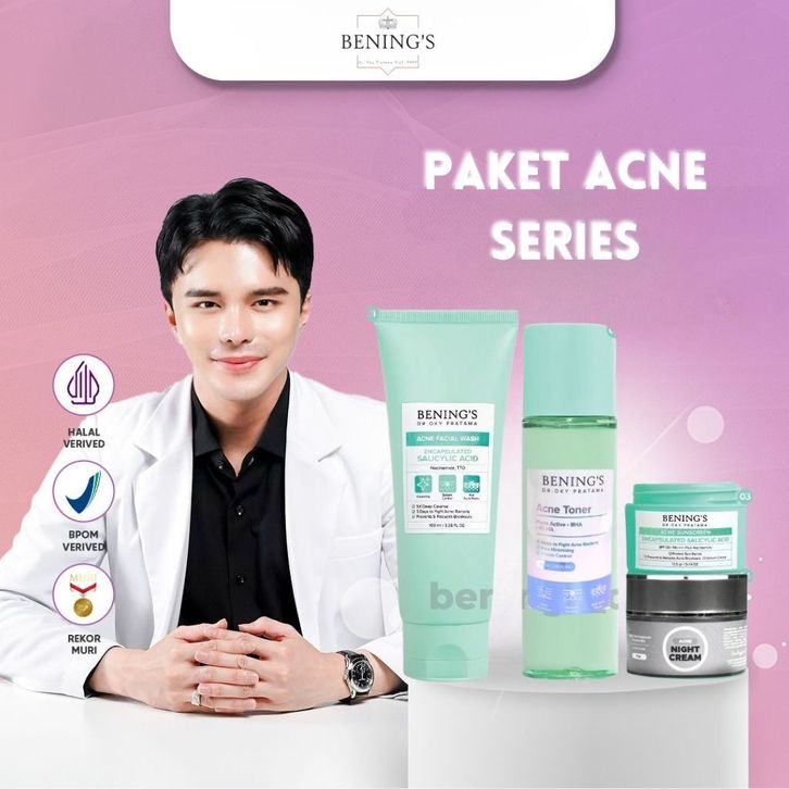 BENING'S SKINCARE PAKET BRIGHTENING ACNE DRAKSPOT - Skincare Perawatan Wajah Glowing Benings Dr Oky