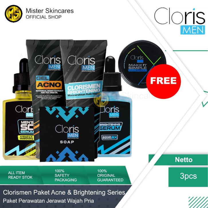 Clorismen Paket Skincare Pria 4in1 Lengkap Sabun & Serum Wajah Pria Brightening Acne Series