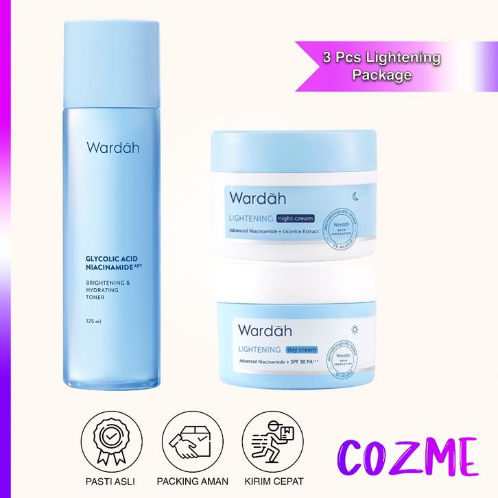 [3PCS] WARDAH Lightening Face Toner All Skin 125mL Night Cream Pot Day Cream Pot