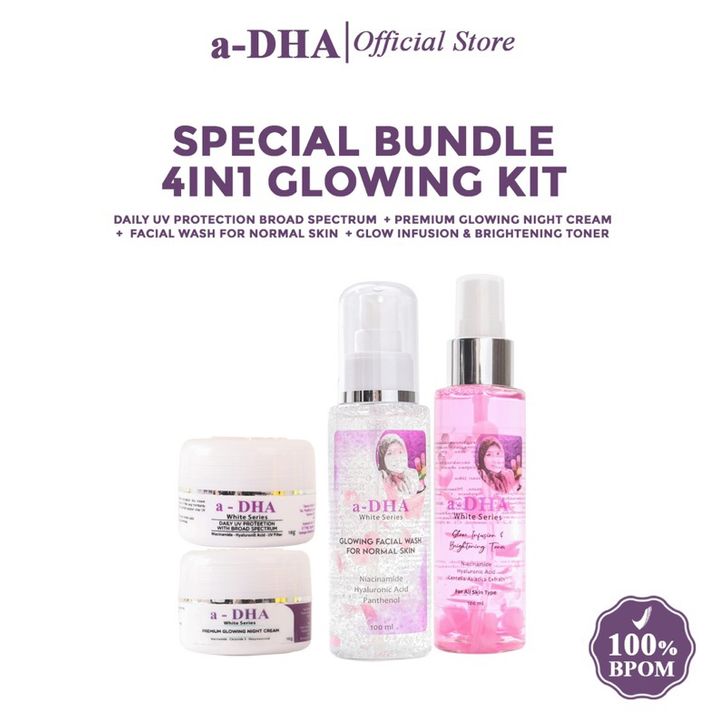 a-DHA 4IN1 Normal Skin Glowing & Brightening Kit - Mencerahkan & Melindungi Kulit Wajah Paparan
