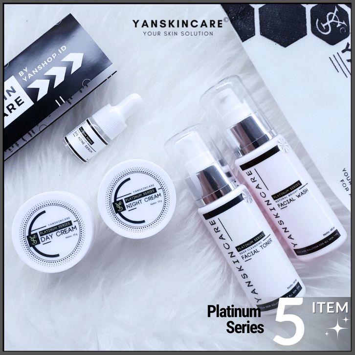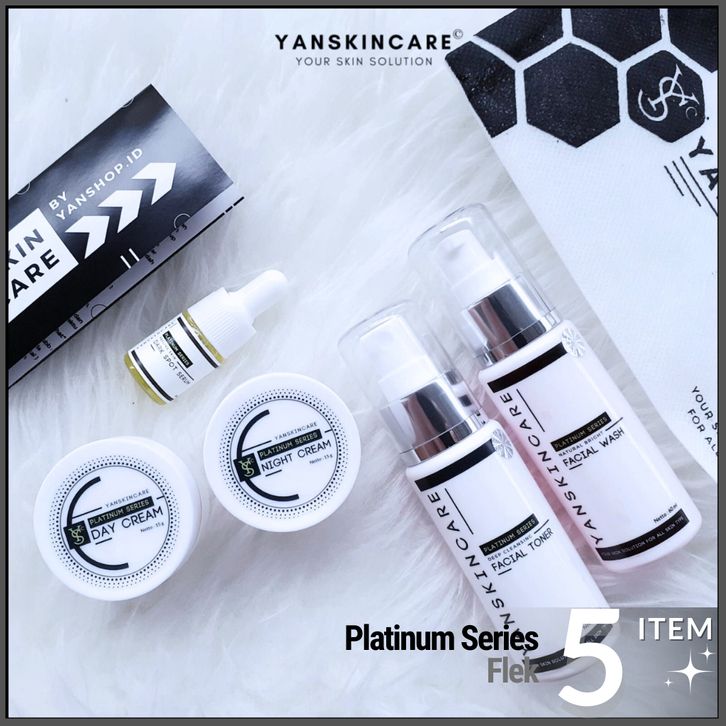 PAKET 5 ITEM STEP 2 SKINCARE PLATINUM SERIES SKIN CARE UNTUK FLEK ACNE DAN GLOWING BY YANSKINCARE