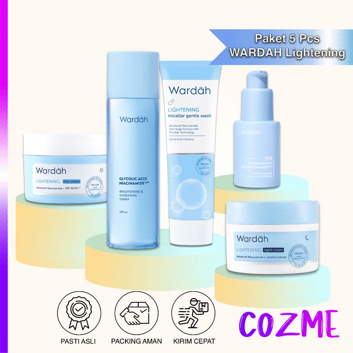 WARDAH Paket Lightening Series Micellar Gentle Wash Symradiance Serum Brightening Toner Day Cream