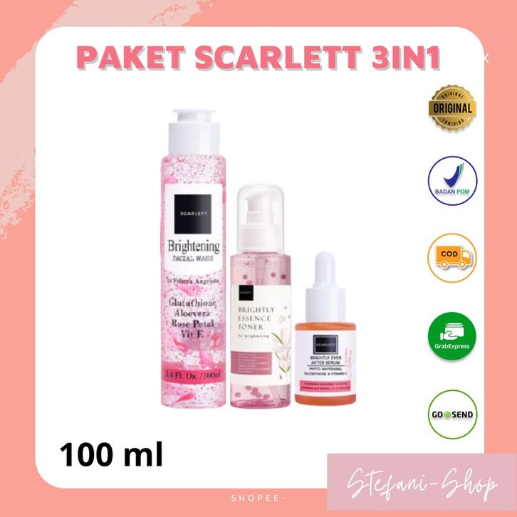 Scarlett Whitening Paket isi 3 Mencerahkan Toner + Serum + Facial wash
