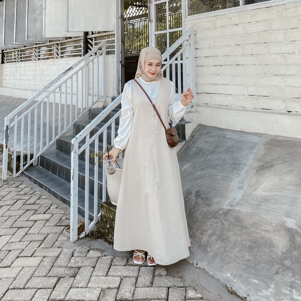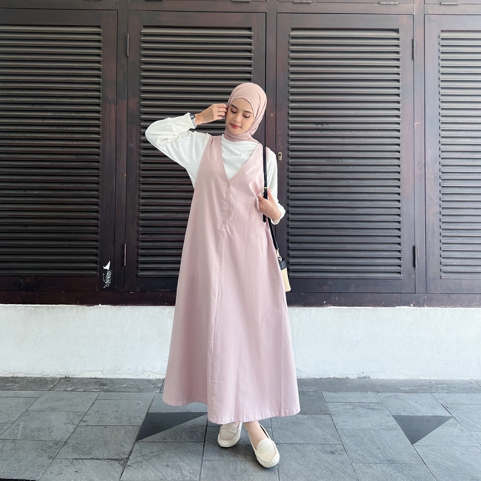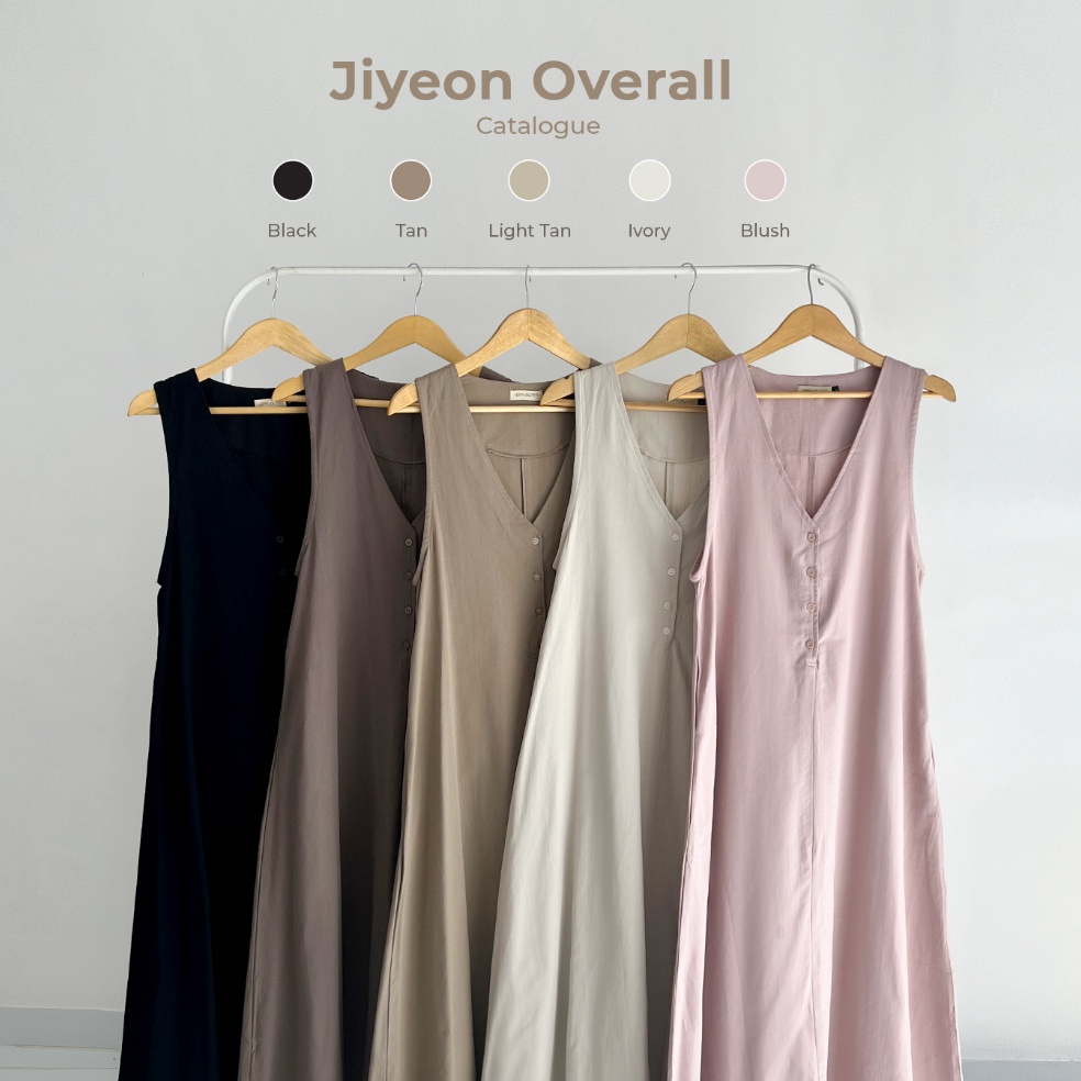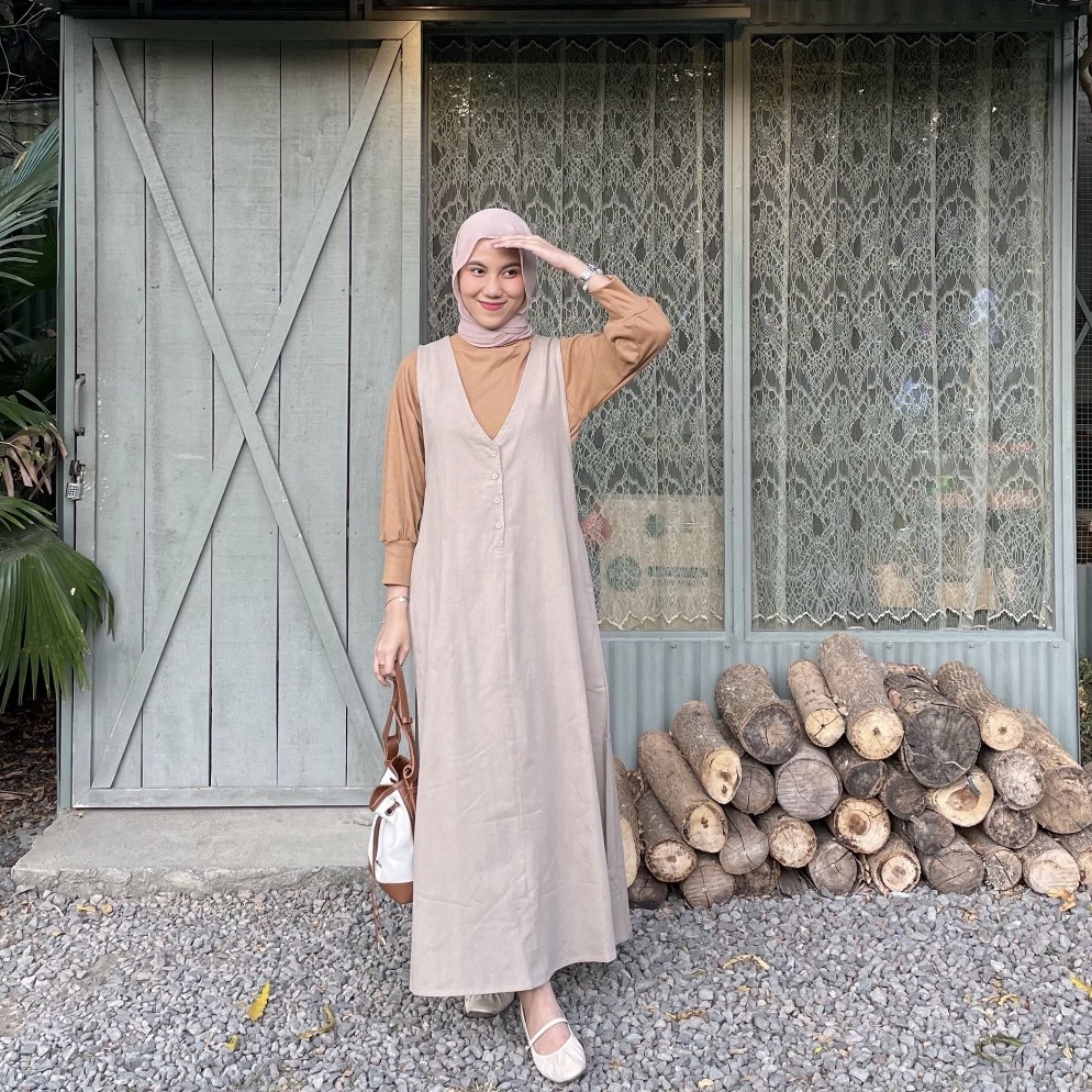 KODE L55B YEPPUOUTFIT Jiyeon Overall Long Dress Linen Twill V Line Tanpa Lengan Outer Chic Casual