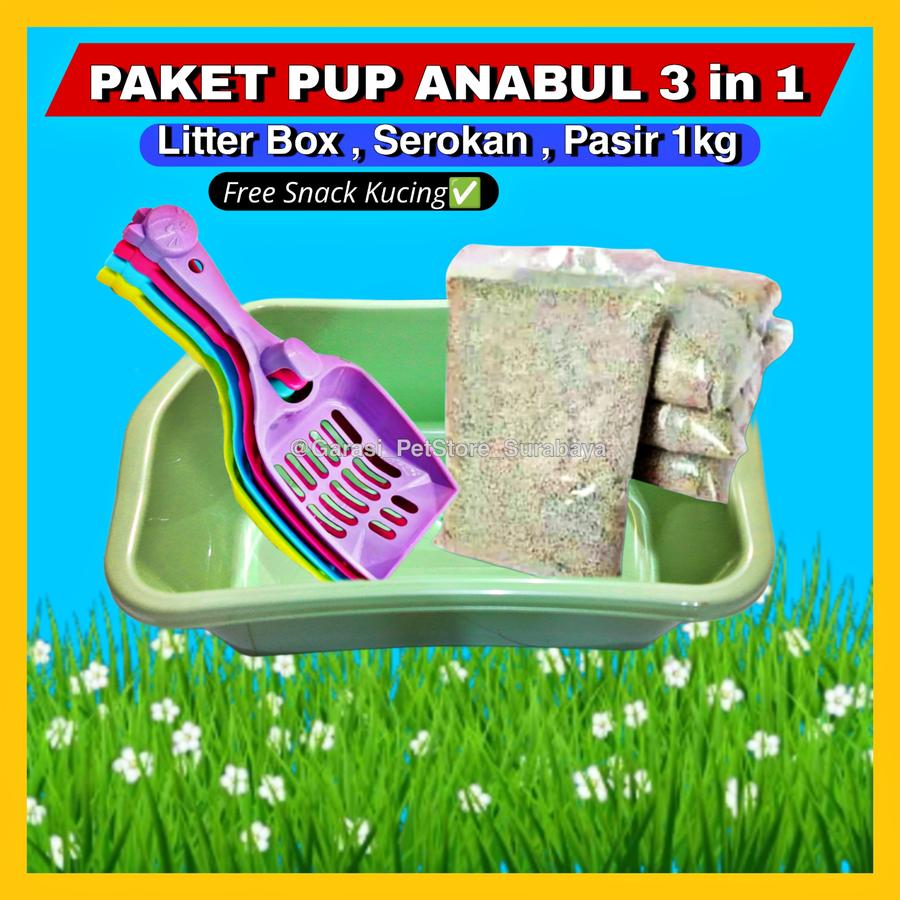 Paket Pup Anabul Starter Kit 3 in1 Litter Box / Serokan / Pasir 1kg FREE SNACK KUCING Bak Pasir Cat - STARTER = 30cm