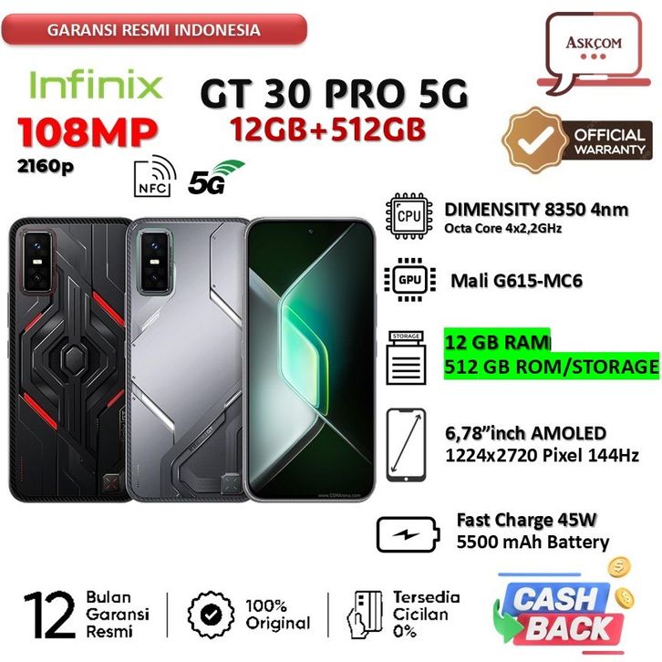 Infinix GT 30 PRO 5G 12GB+512GB Dimensity 8350 Ultimate 6,78inches AMOLED 144Hz GARANSI RESMI