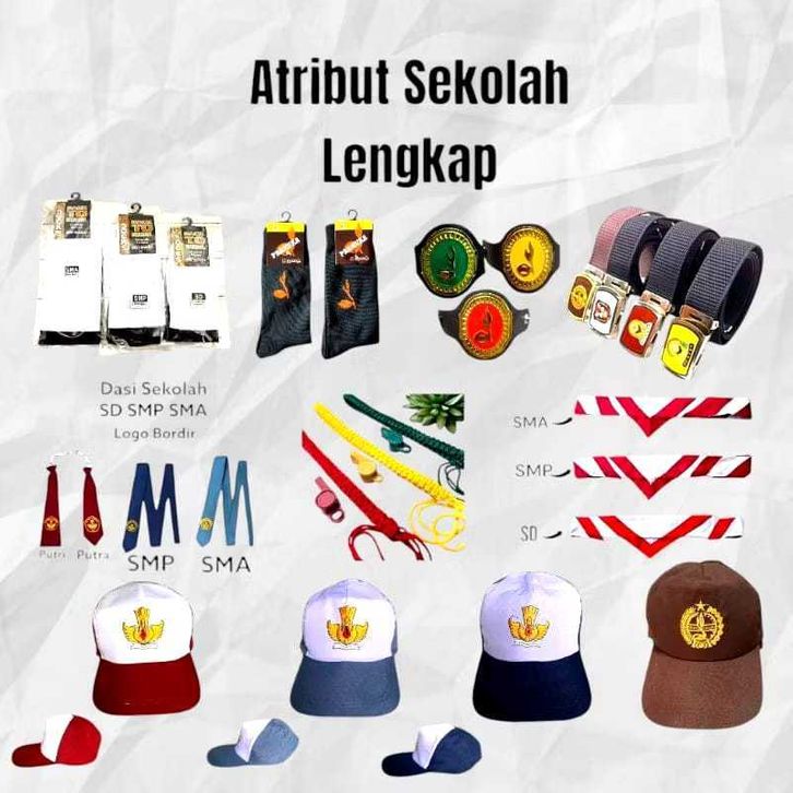PAKET ATRIBUT LENGKAP SEKOLAH SD SMP SMA TOPI DASI GESPER ATAU SABUK KAOS KAKI terlaris, termurah,