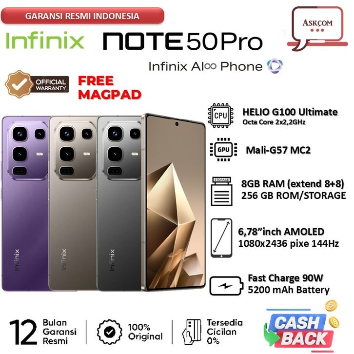 Infinix Note 50 PRO 8+8GB/256GB Helio G100 Ultimate 5200 mAh 90W Wireless Charging GARANSI RESMI
