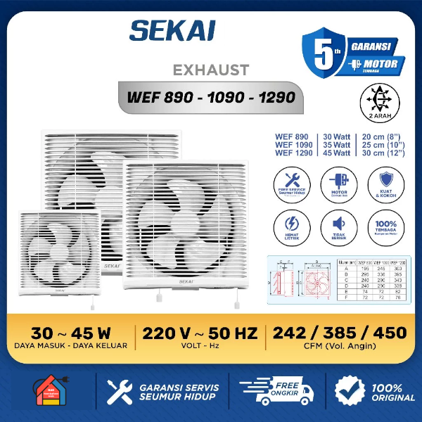 Kipas Angin Hisap Sekai WEF 1090 (10 Inch) Keluar-Masuk / Exhaust Fan Sekai WEF 1090