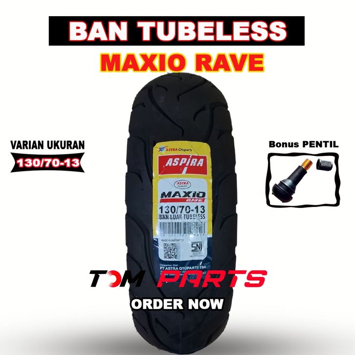 BAN TUBELESS 130/70-13 ASPIRA MAXIO RAVE UNTUK BAN BELAKANG NMAX PCX 160 GRATIS PENTIL