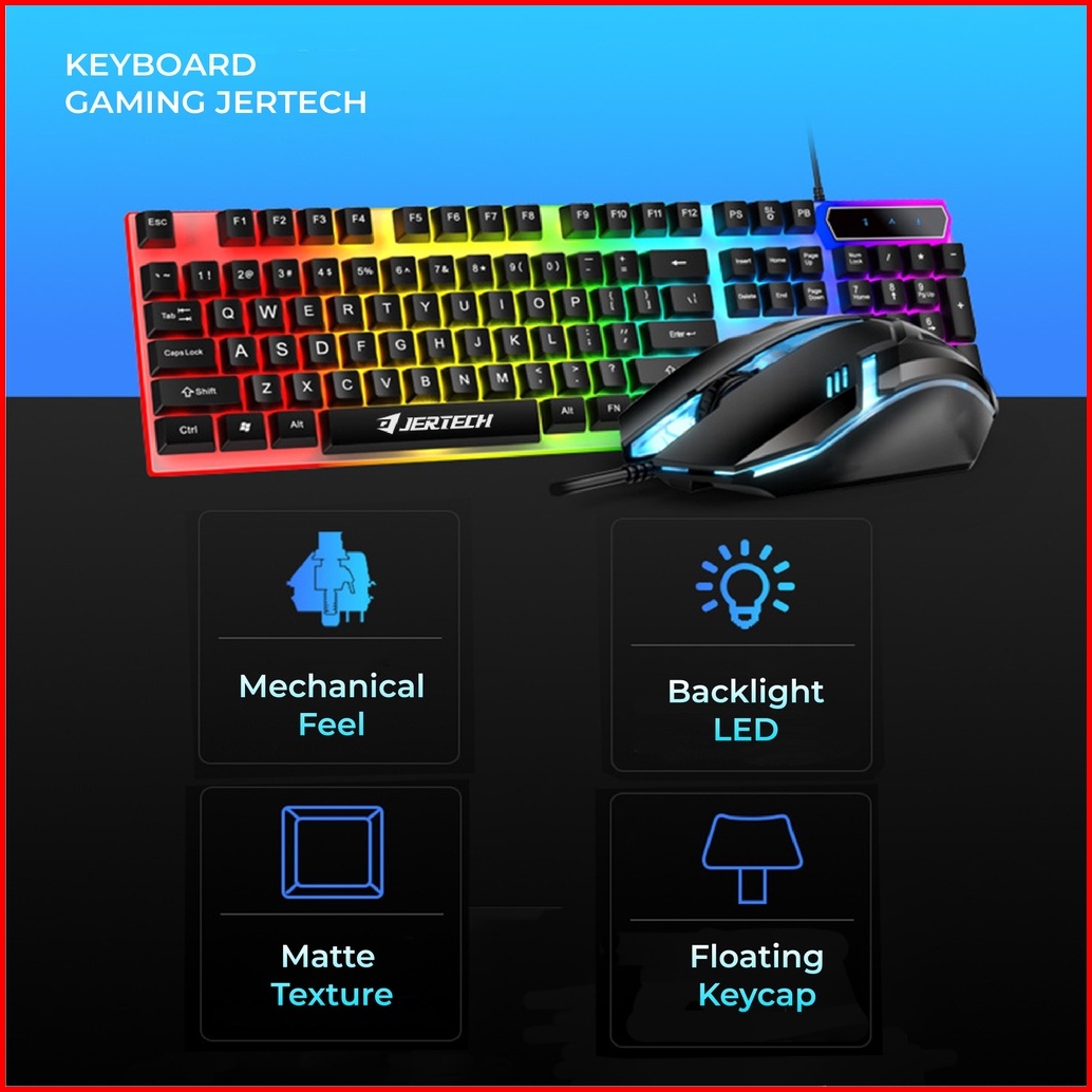 Jertech Keyboard Mouse Gaming Kabel Km170 Full Led Backlight 104 Keys