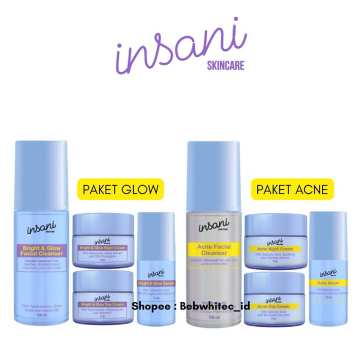 INSANI SKINCARE PAKET BRIGHT & GLOW GLOWING / PAKET ACNE BPOM & FORTE KLINIK APOTEKER PRODUK BBC