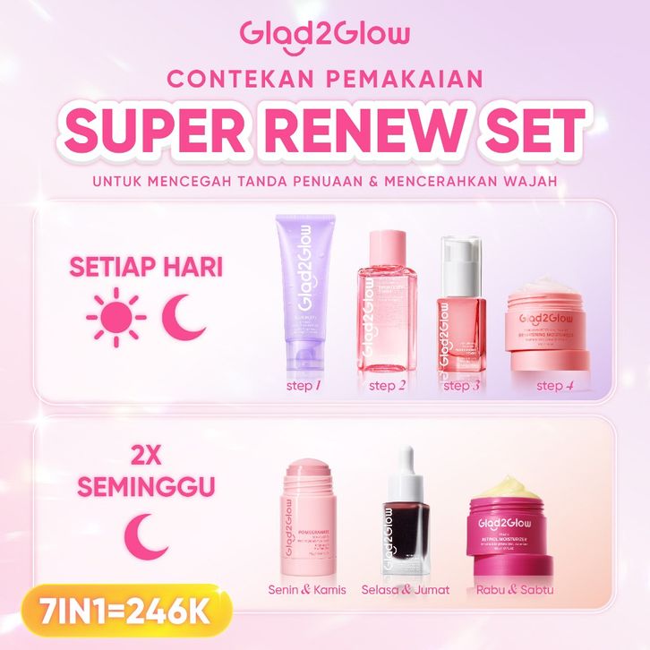 100% ORIGlad2Glow Glowing & Renew bundle 7in1 7pcs-Barrier toner+Brightening Moisturizer+Acne
