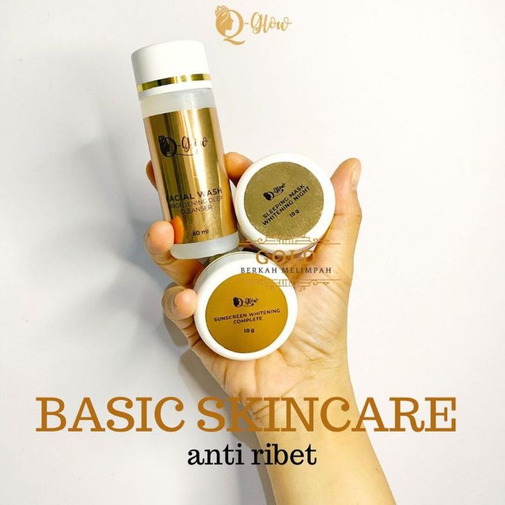 Q GLOW BASIC SKINCARE AMAN ISI 3 PEMUTIH WAJAH MENCERAHKAN HILANGKAN JERAWAT