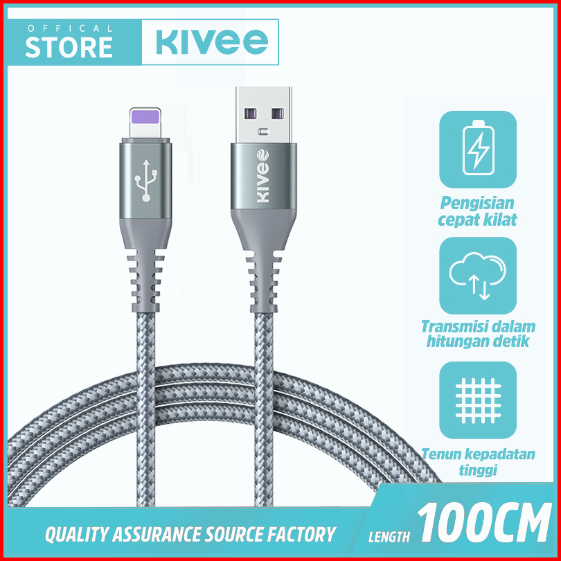 Hot Kivee Kabel Data Iphone Fast Charging Kv-ct025 Silver Lightning Type C Universal Original 1.2m