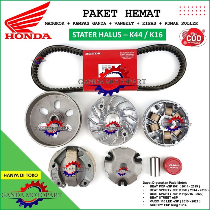 PAKET MANGKOK KAMPAS GANDA KIPAS RUMAH ROLLER VANBELT BEAT ESP SCOOPY ESP RING 14 12 DONUT VARIO 110 LED ESP K16 K44