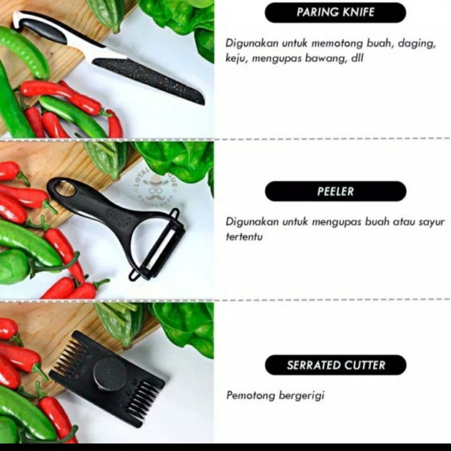 [ PISAU J13 ] PISAU SET 5 IN 1 KERAMIK CERAMIC J13 DENGAN KARDUS Peeler Daging Sayur DAPUR 5pc 5pcs 5 pc pcs Knife