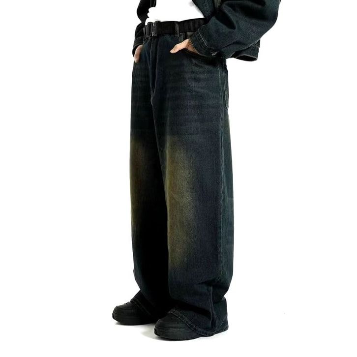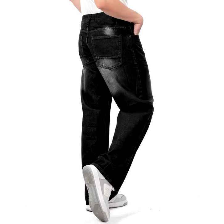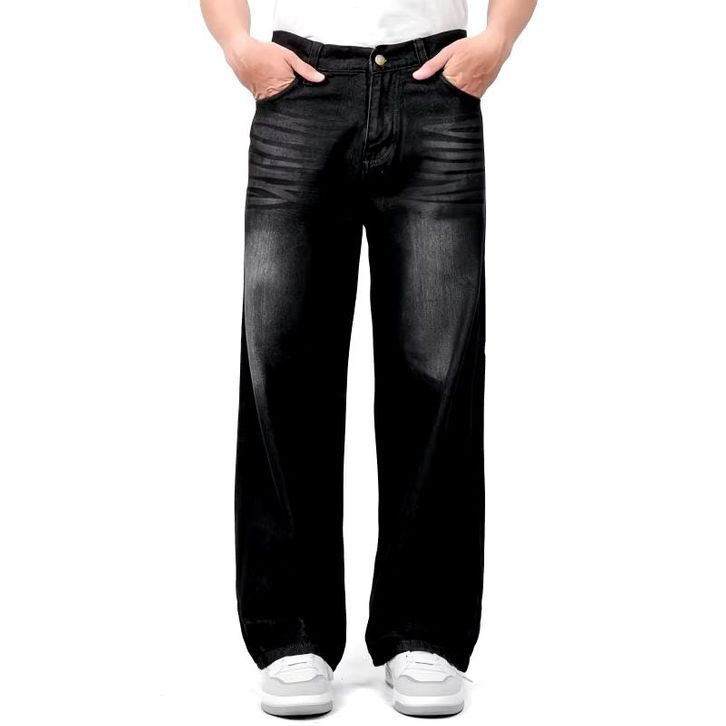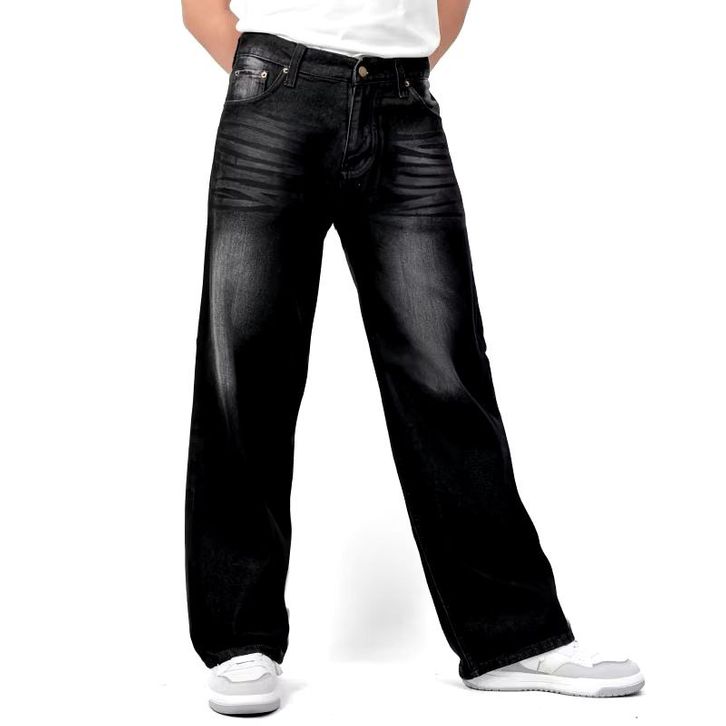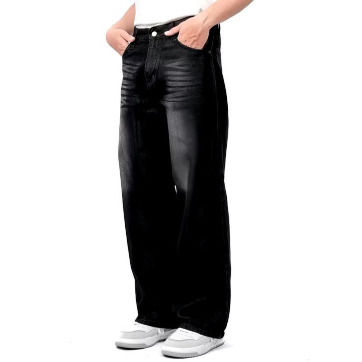 Celana Jeans Wisker Pria Unisex Wide Leg Lebar Gombrong Skena Black