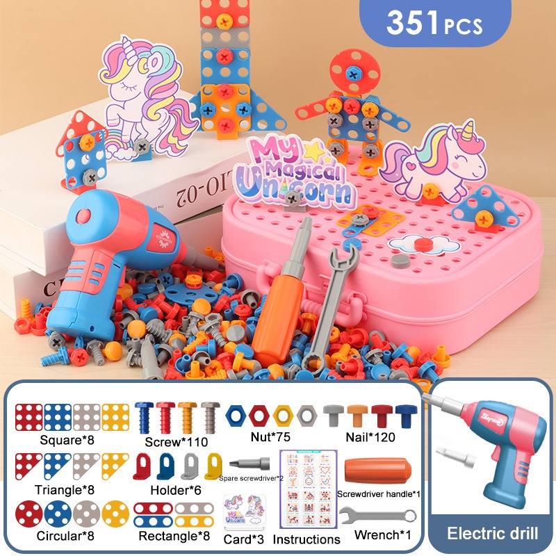 210/351PCS BOR LISTRIK MAINAN TOOL SET DIY SEKRUP MAINAN PUZZLE ANAK RAKITAN BOR LISTRIK BONGKAR PASANG BOR LISTRIK KOTAK PERALATAN SEKRUP