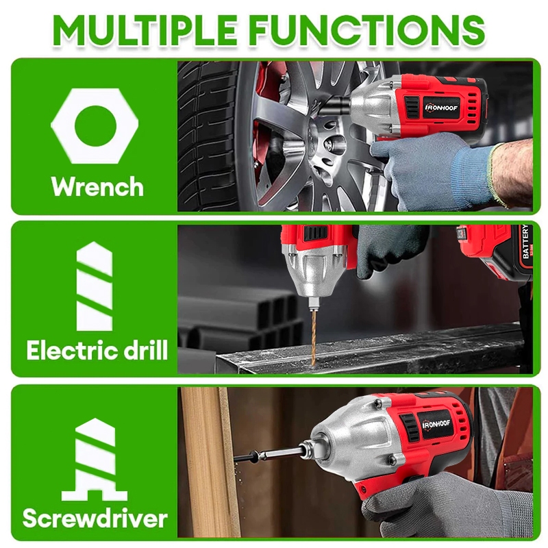 IRONHOOF CORDLESS IMPACT WRENCH impact baterai MESIN BOR UNTUK BAUT MOBIL impact Brushless