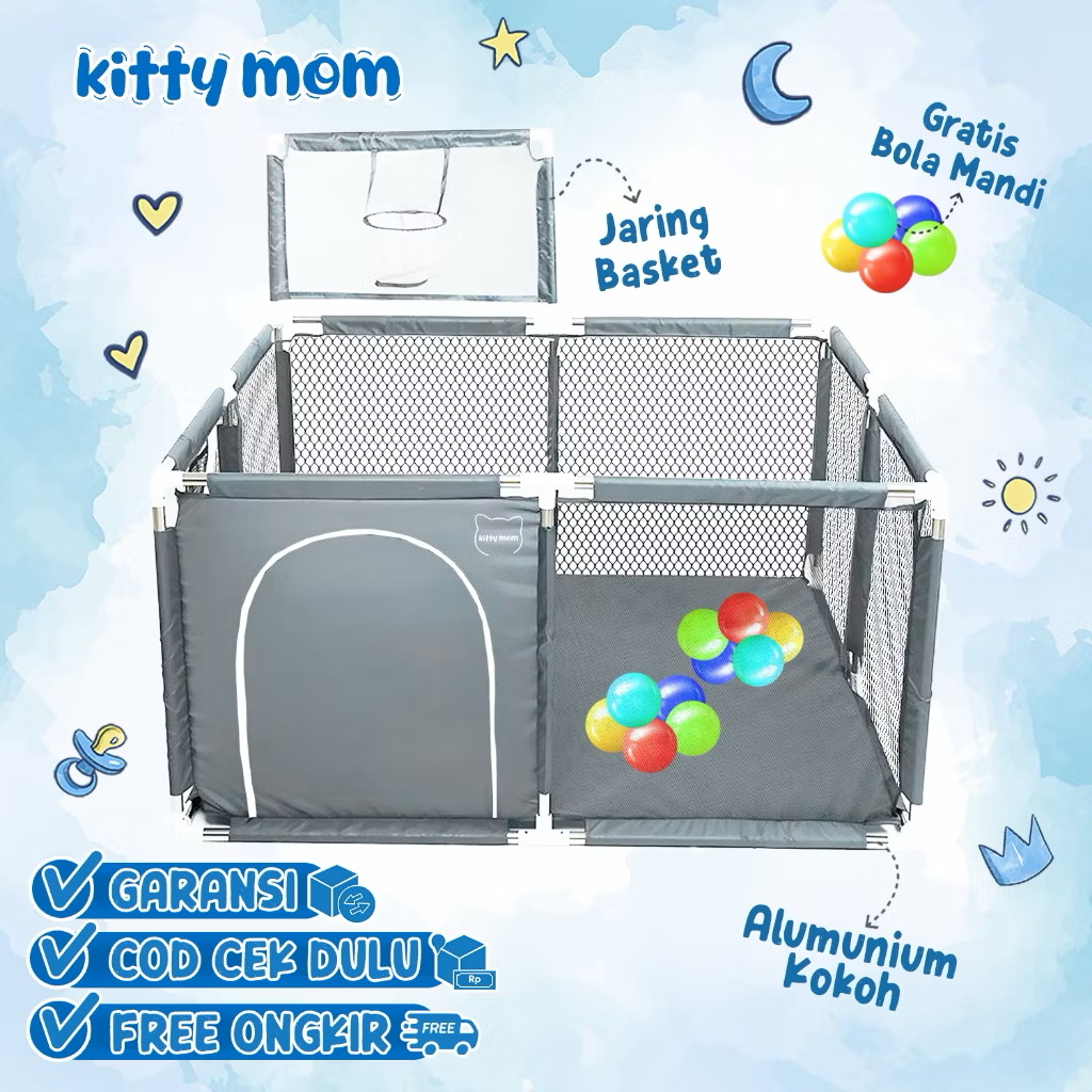 Kitty Mom - Pagar Bayi Bermain Kolam Keranjang Basket Tempat Mandi Bola Anak Baby Playpen Premium