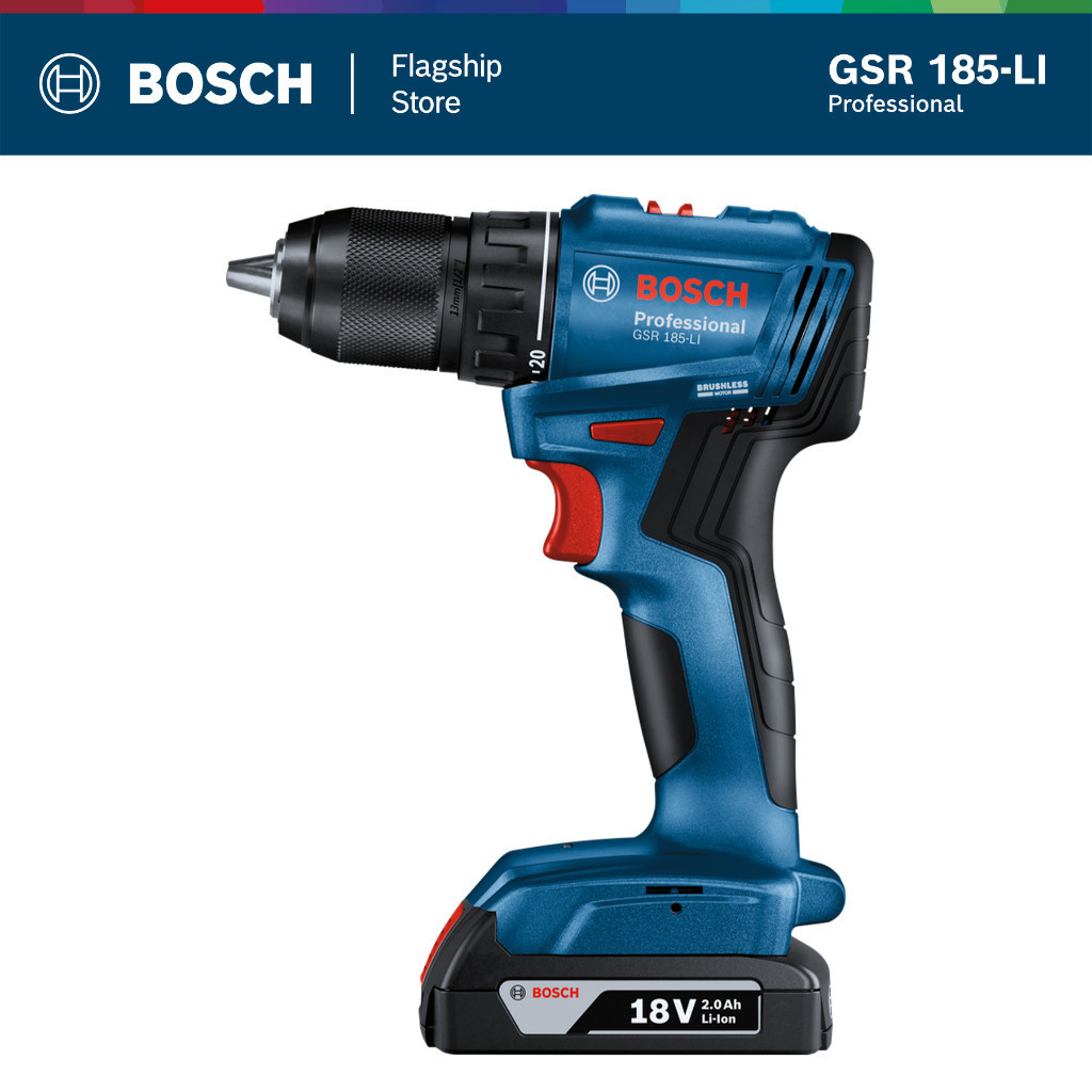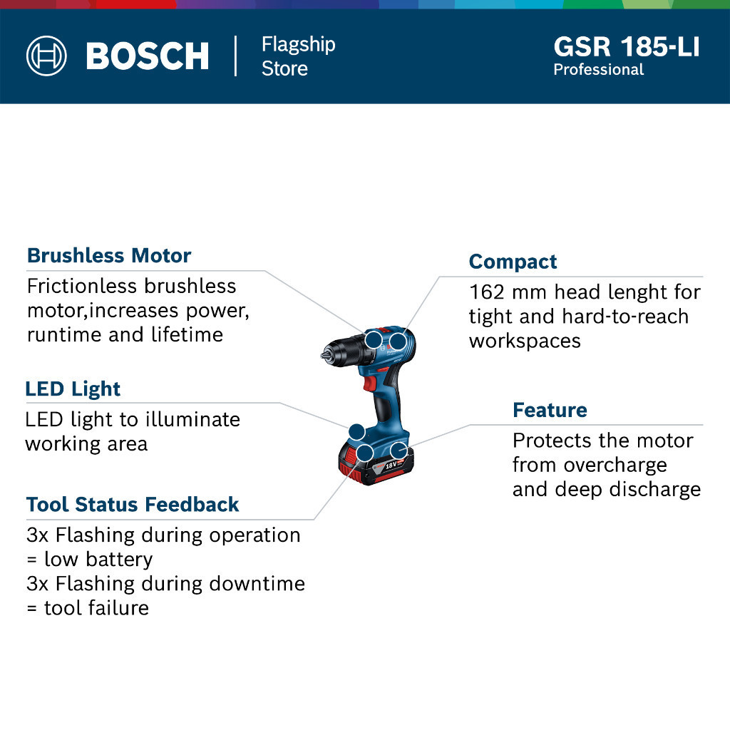 BOSCH Mesin Bor Baterai Tanpa Kabel GSR 185 LI + Acc Kit / Cordless Brushless Drill Driver - 06019K30K2