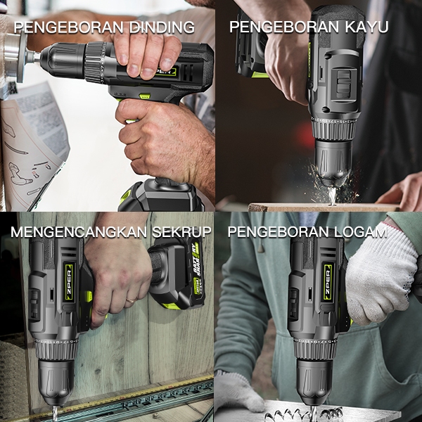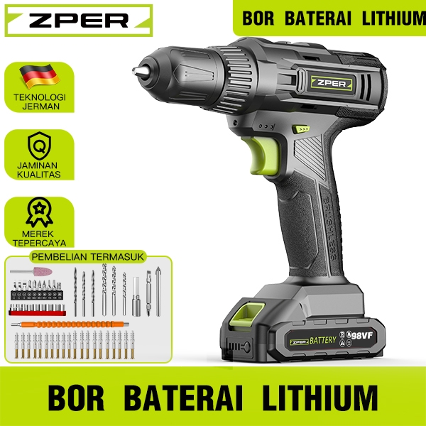 ZPER Mesin Bor 2Baterai 10mm bor listrik murah bor tangan baterai besi tembok Beton kayu ZP031