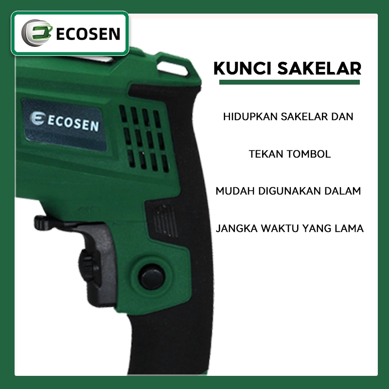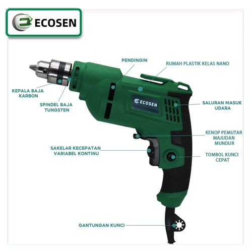 ECOSEN 800W Mesin Bor Listrik 10mm Bolak Balik Electric Drill Mesin Bor