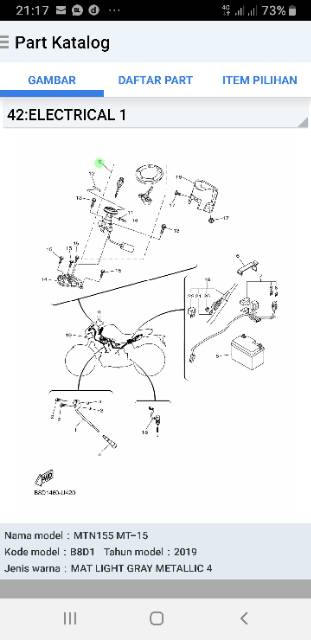 Kunci Kontak Yamaha MT15-MT 15-MT 155 Asli B7D-XH250-00