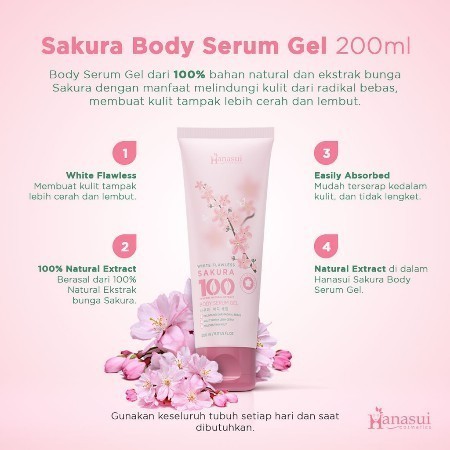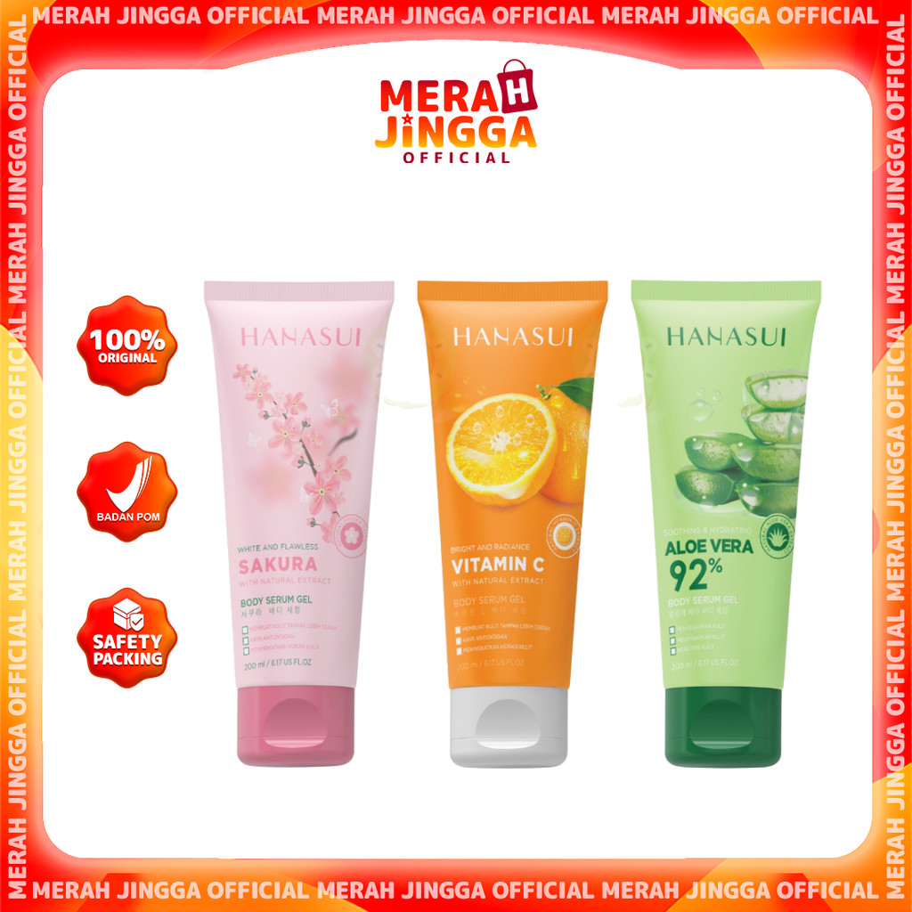 HANASUI Body Serum Gel 200mL | Aloe Vera | Sakura | Vit C | Merah Jingga Official