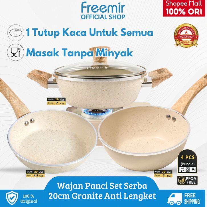 Set Wajan & Panci Granite Anti Lengket 3in1 20cm | Peralatan Masak Food Grade Serbaguna Bisa Tanpa Minyak