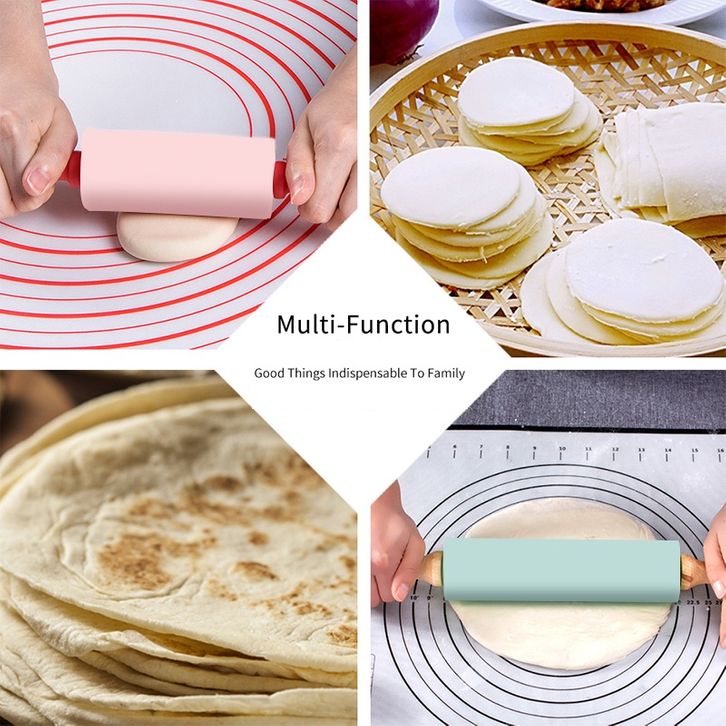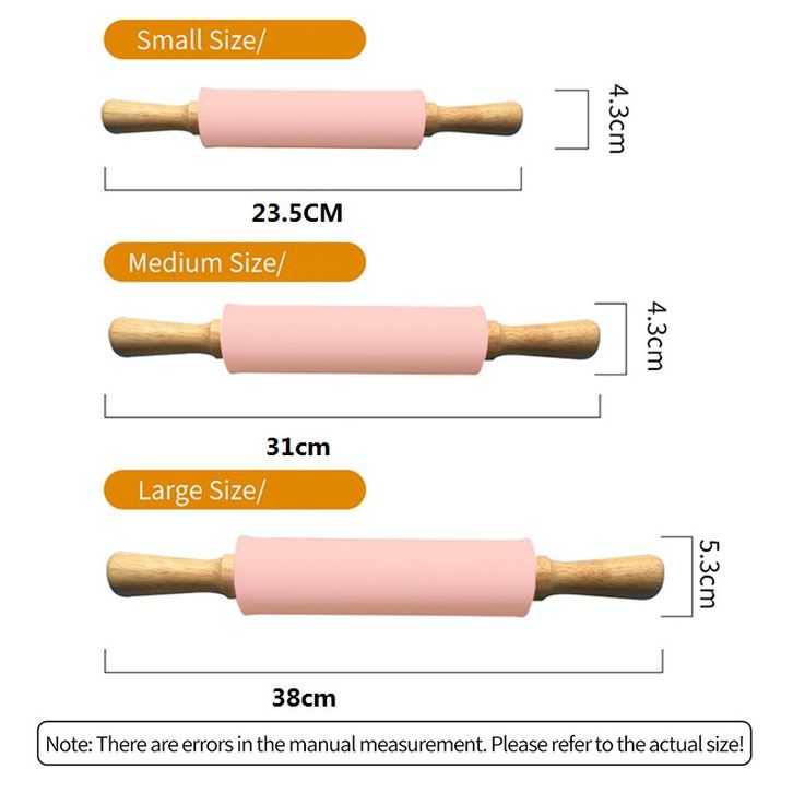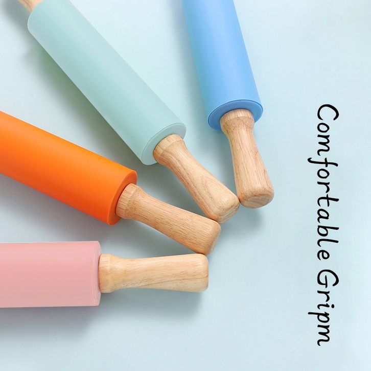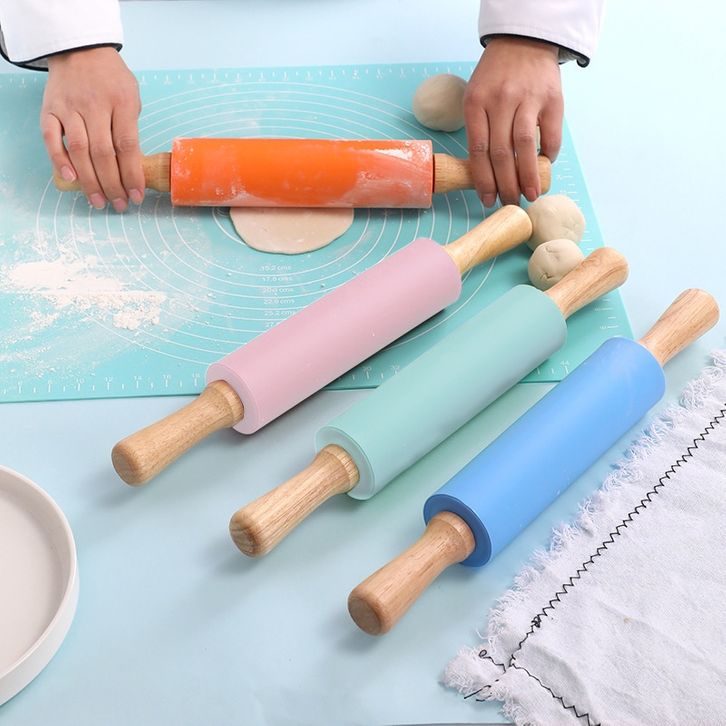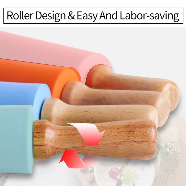 Rolling Pin Pastry Dough Flour Roller Silicone 23cm/31cm/38cm Non-Stick Wood Handle Rolling Pin Kitchen Baking Tools Chr