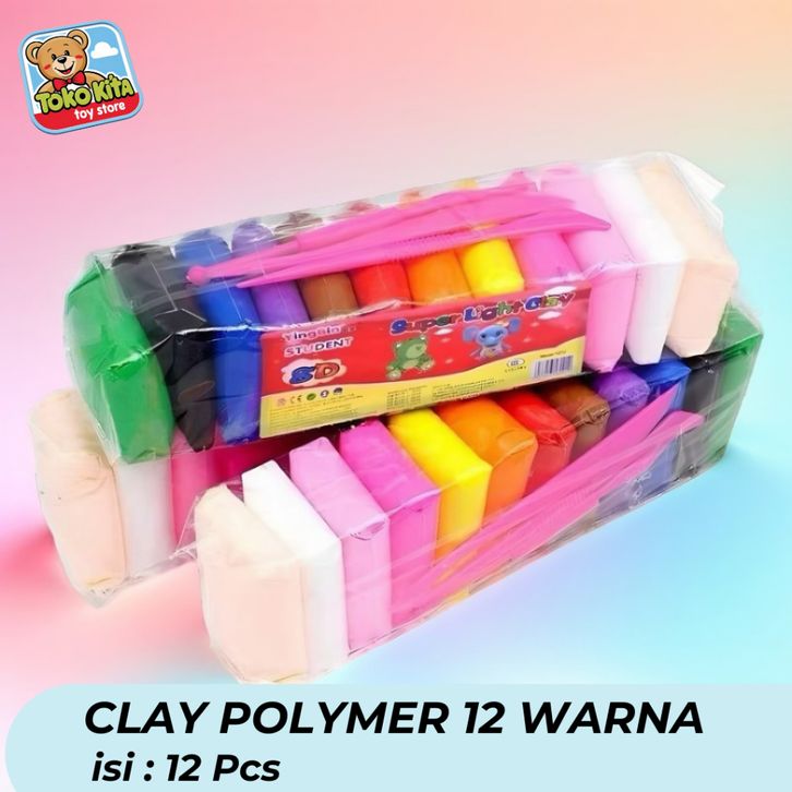 Clay Polymer 12 Warna Clay Mainan Anak isi 12 Pcs Besar Super Light Clay 12 Warna
