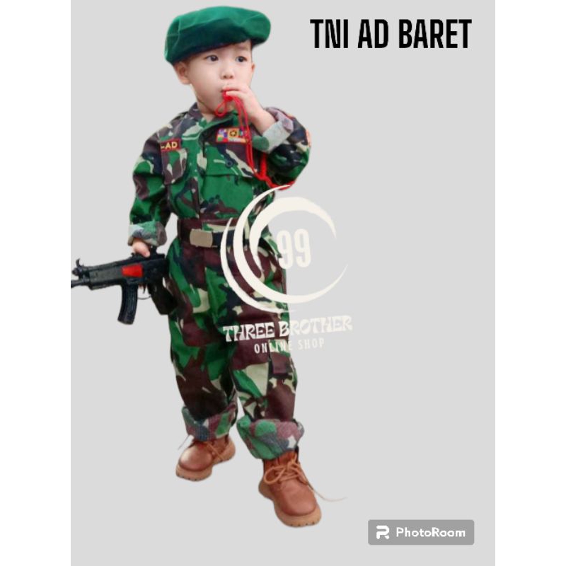 Baju Seragam Setelan TNI AD Angkatan darat Tentara Baret Anak atribut Lengkap
