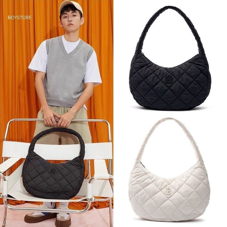 Tas MLB Quilted White and Black Hobo Bag Women + FREE BOX