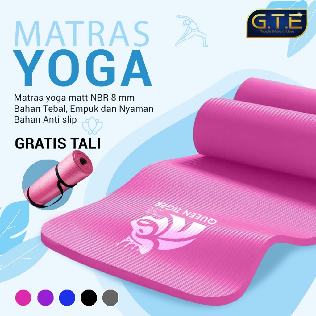 Matras Olahraga Yoga NBR 8mm Tebal Premium Anti Slip + Free Tali | Matras Senam Fitness Pilates