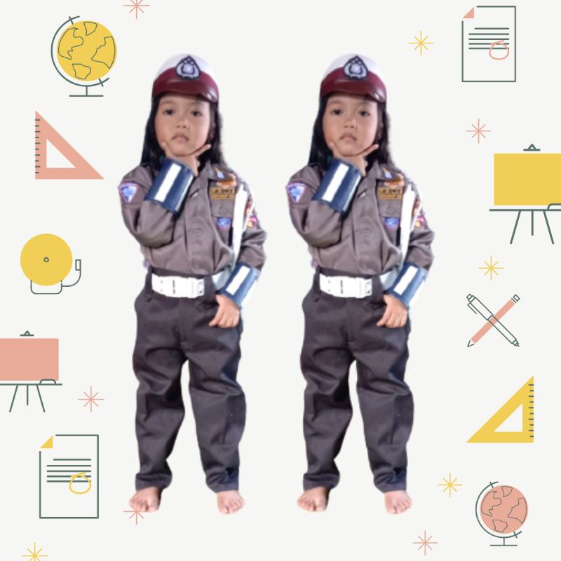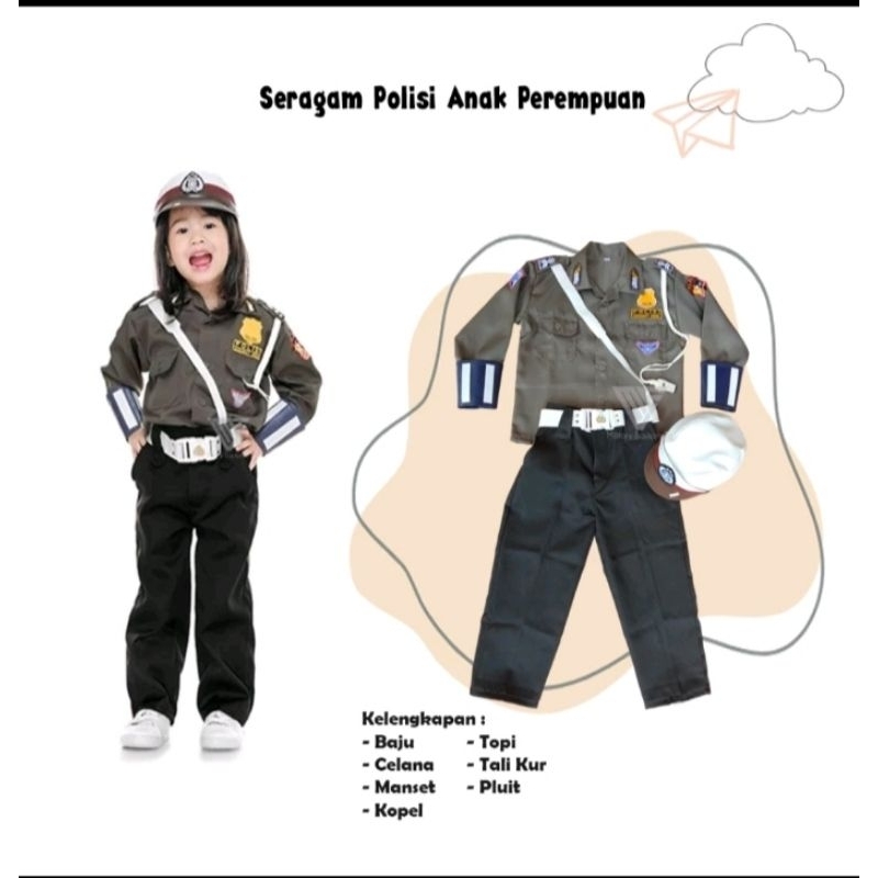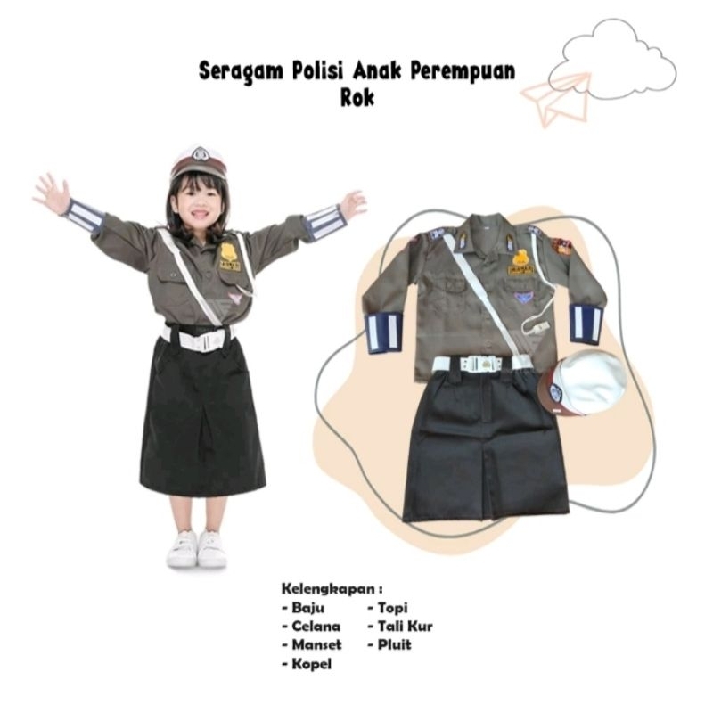 BAJU POLISI ANAK PEREMPUAN//BAJU SERAGAM POLWAN ANAK SETELAN ROK DAN CELANA/KOSTUM KARNAVAL/BISA /SERAGAM POLISI ANAK