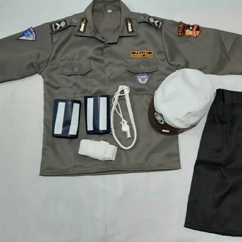 SERAGAM POLISI ANAK TK/paud LENGKAP+ATRIBUT GLOSIR Bahan tebal