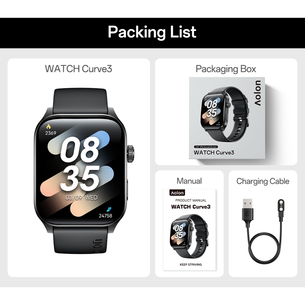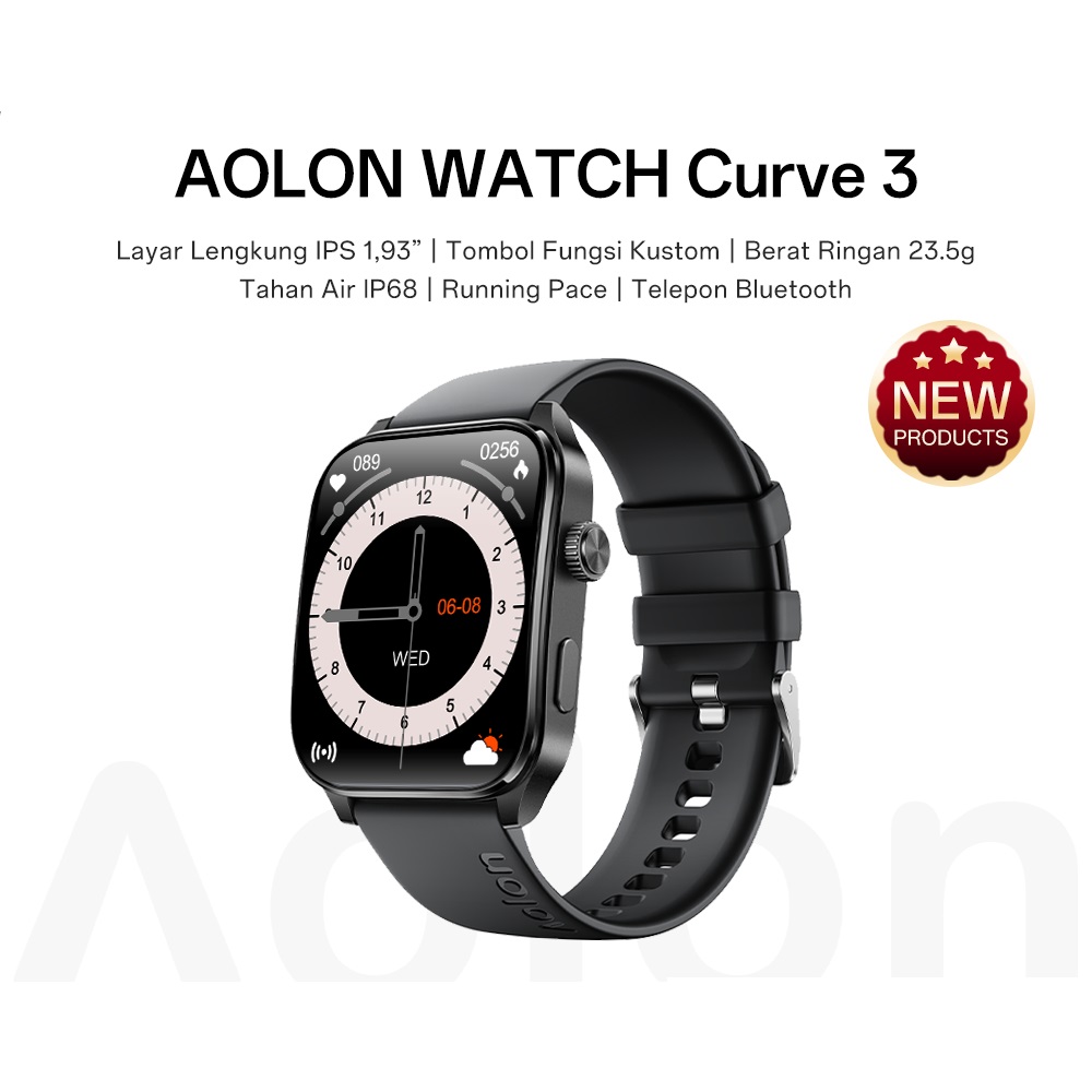 Smartwatch Aolon Curve 3 Jam 1.93-inci Layar IPS Tombol Kustom Pemantauan Tidur Detak Jantung Telepon Bluetooth Tahan Ai