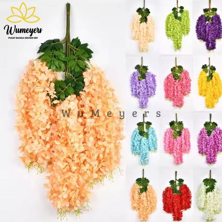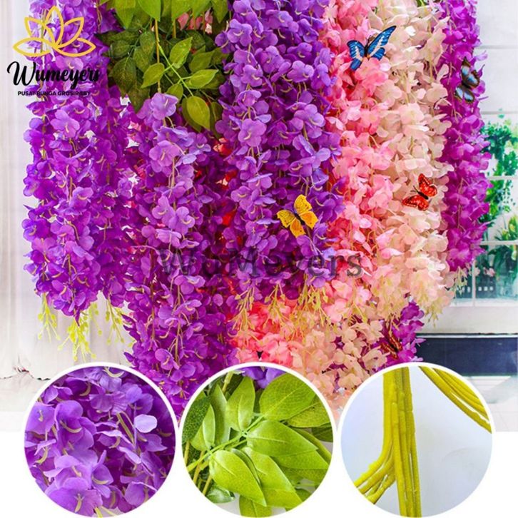 WISTERIA JUMBO GANTUNG M CABANG 3 ARTIFICIAL - BUNGA JUNTAI PREMIUM GANTUNG UNTUK DEKORASI WEDDING - IMPORT