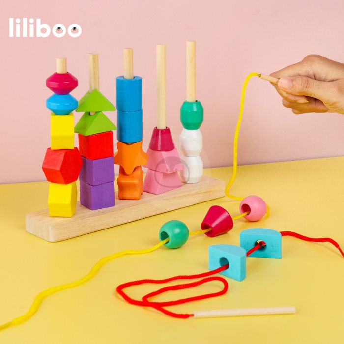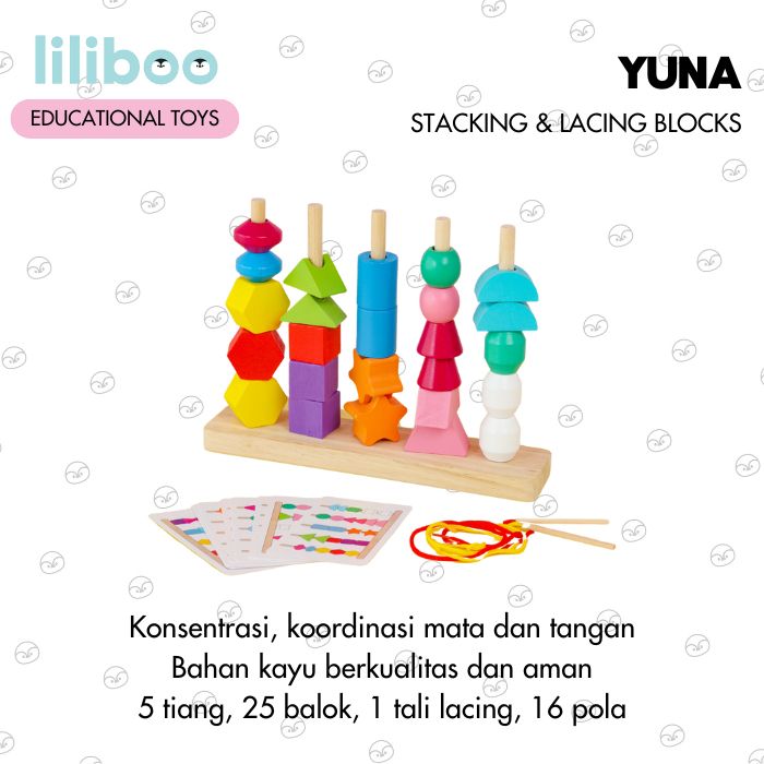 LILIBOO YUNA MAINAN EDUKASI ANAK MONTESSORI KAYU STACKING LACING BLOCK ORIGINAL READY STOCK
