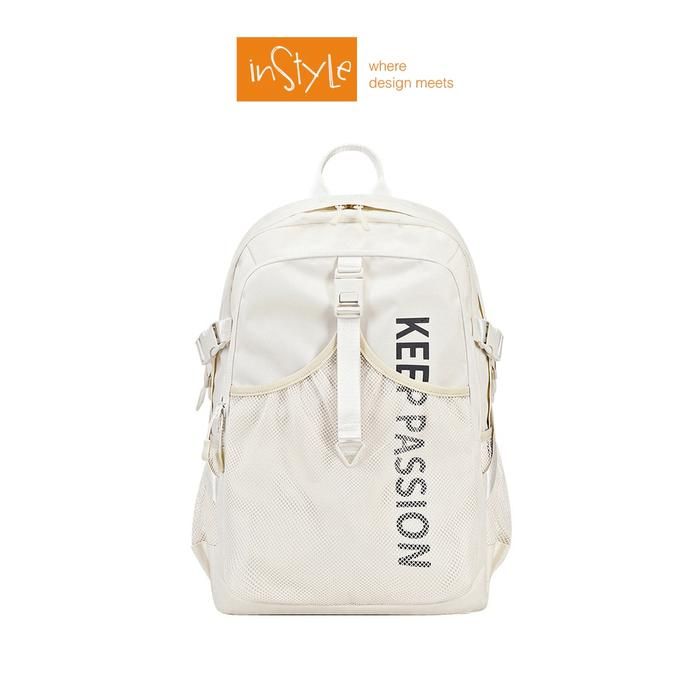 Tas Ransel Laptop Sekolah Kuliah Oxford Anti Air Backpack Besar (A1-001-9681) - 15,6 INCH - PUTIH-CREAM