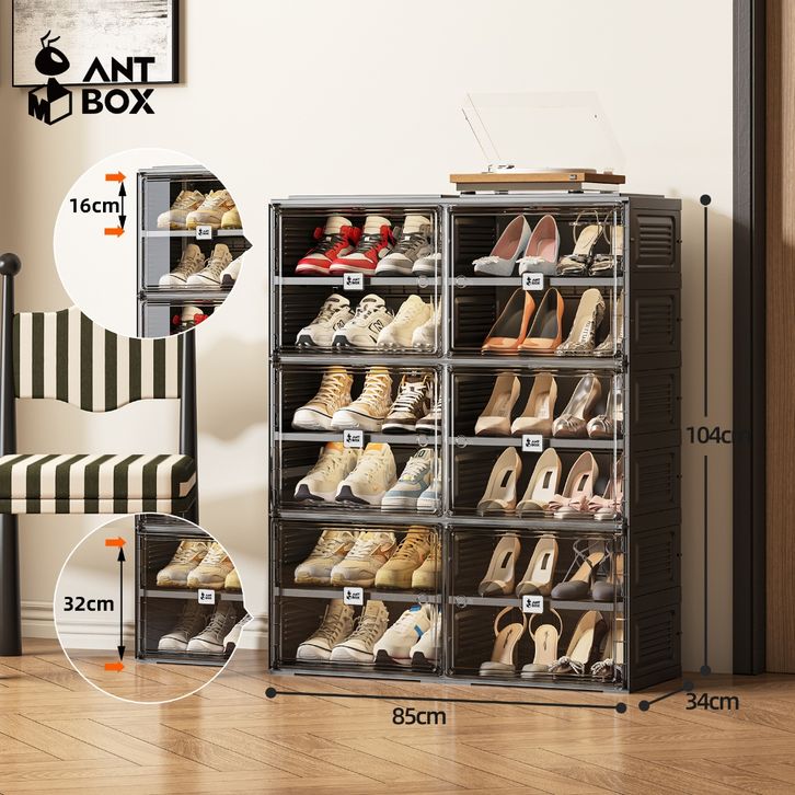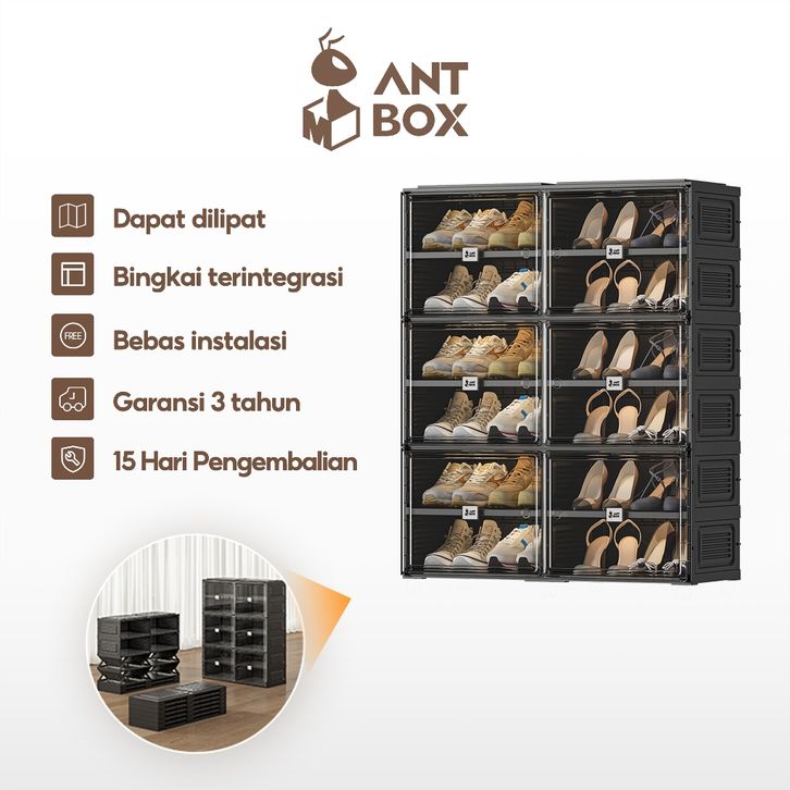 ANTBOX Lemari Kabinet Sepatu Kapasitas 24 Pasang Warna Hitam Rak Sepatu Susun Tertutup Minimalis