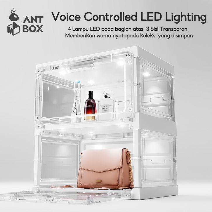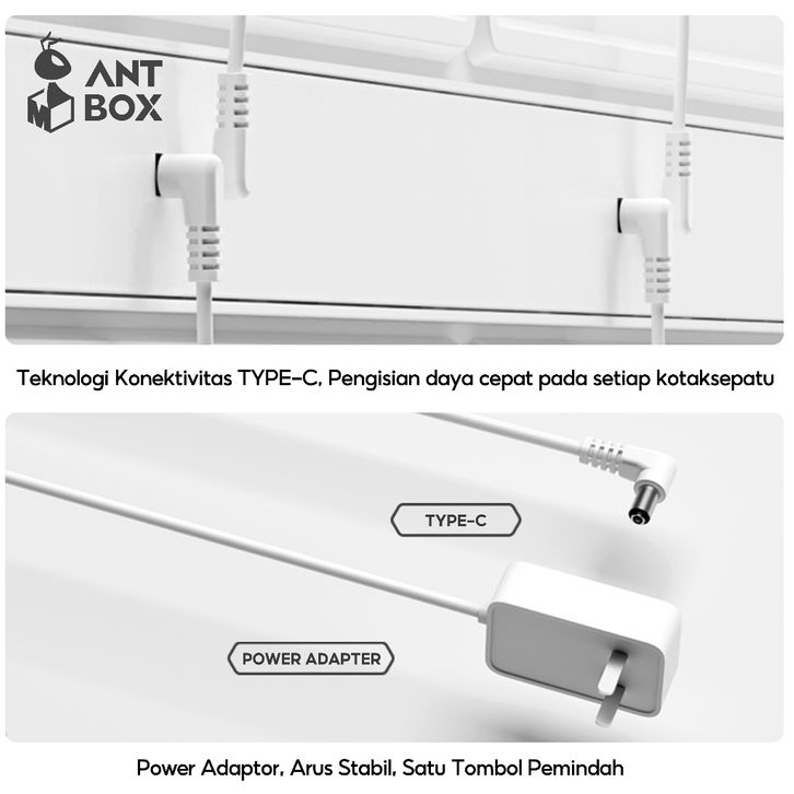 ANTBOX Kotak Sepatu LED Rak Sepatu 2 Baris 16 Pasang Lemari Sepatu LED Susun Lipat Bebas Instalasi